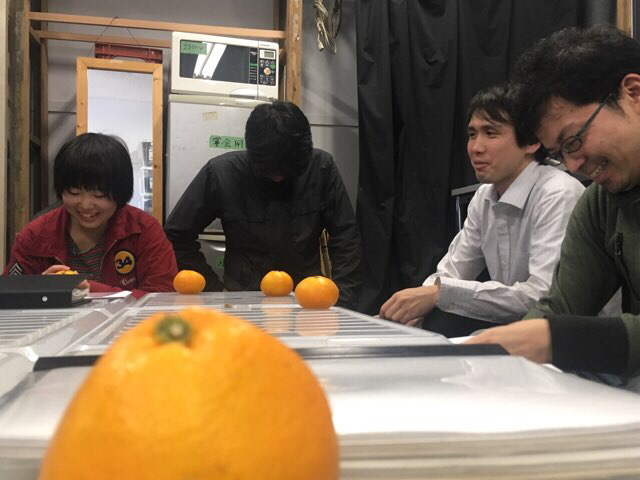 (いただいたみかん越しのみんな。)