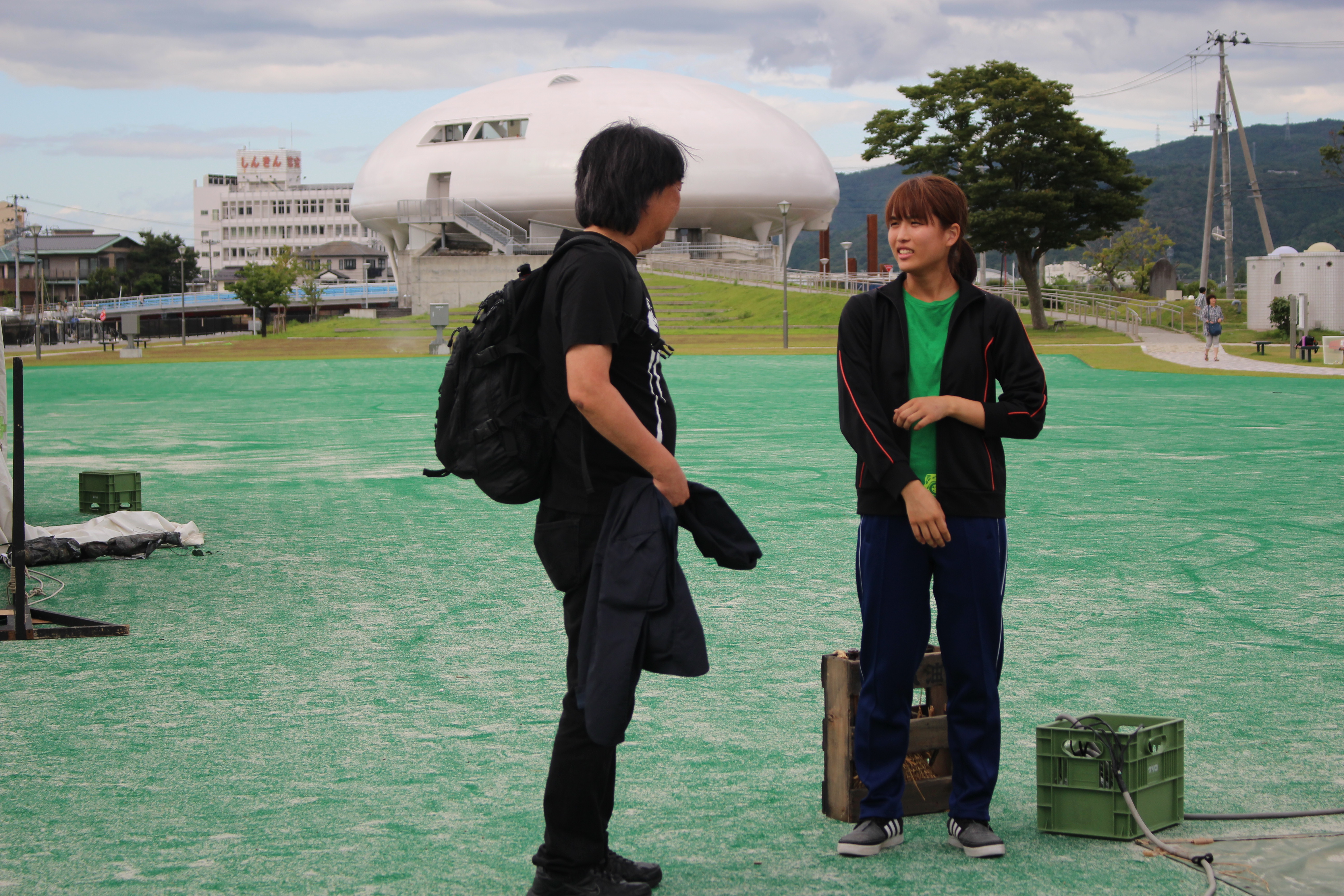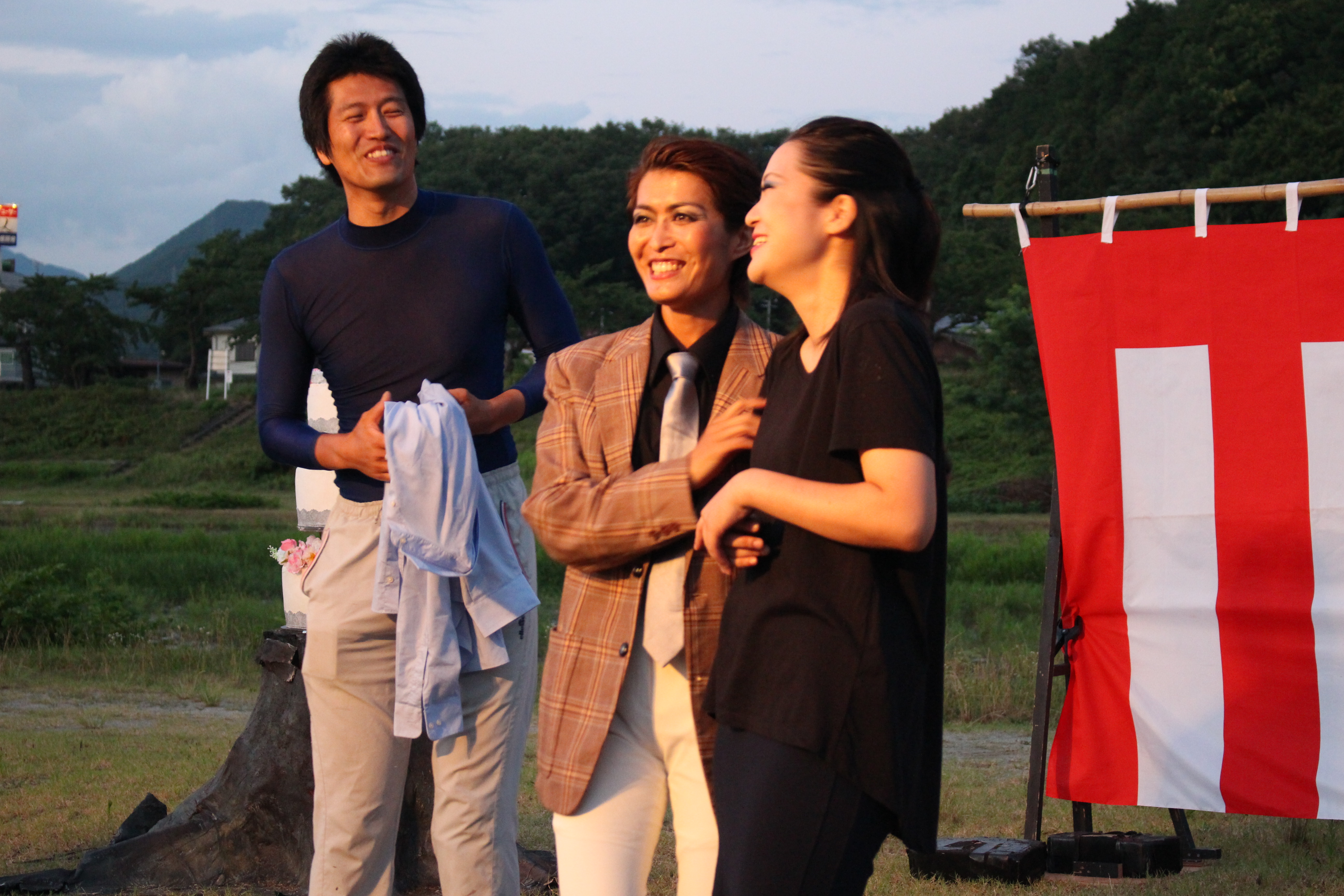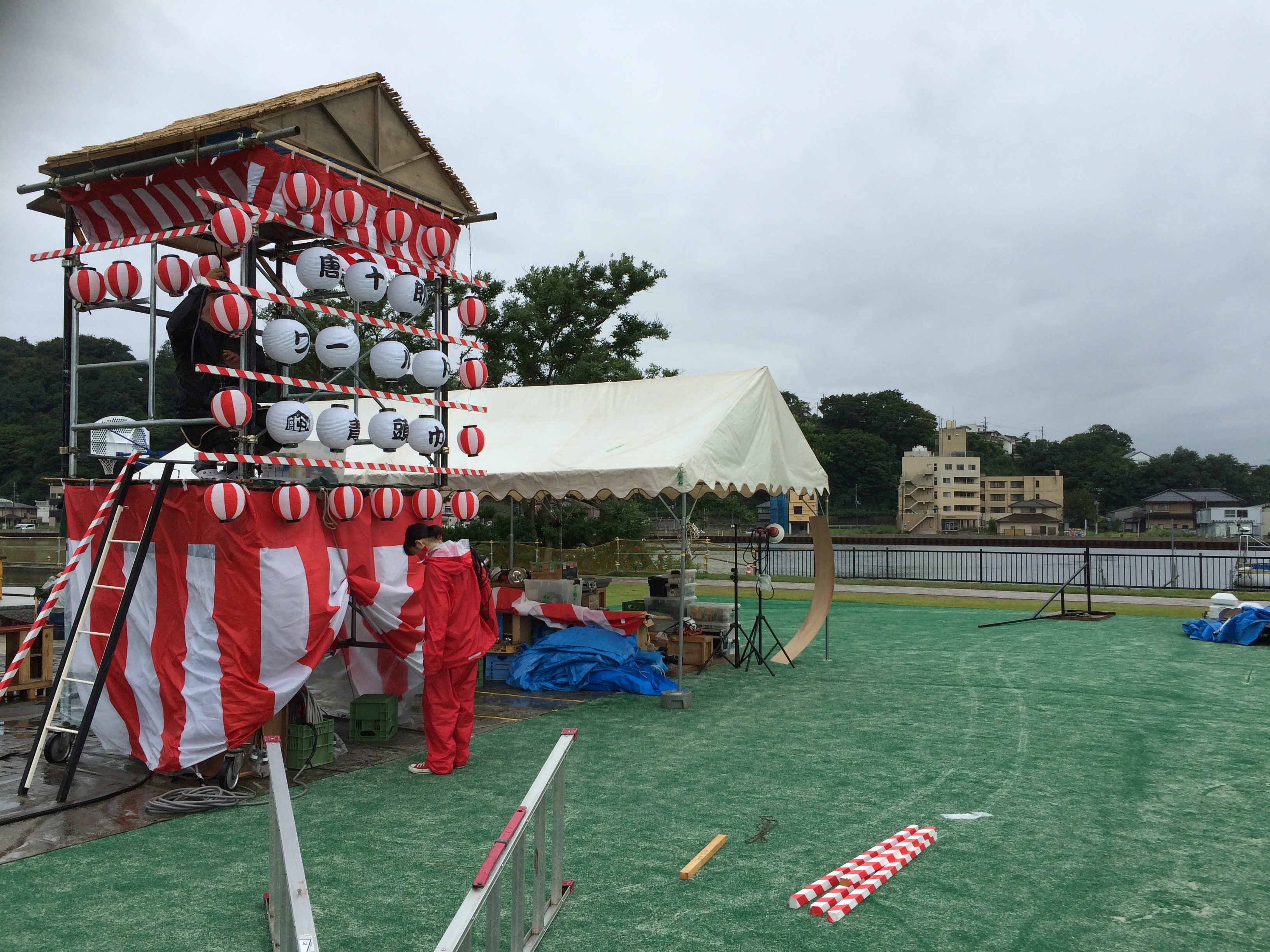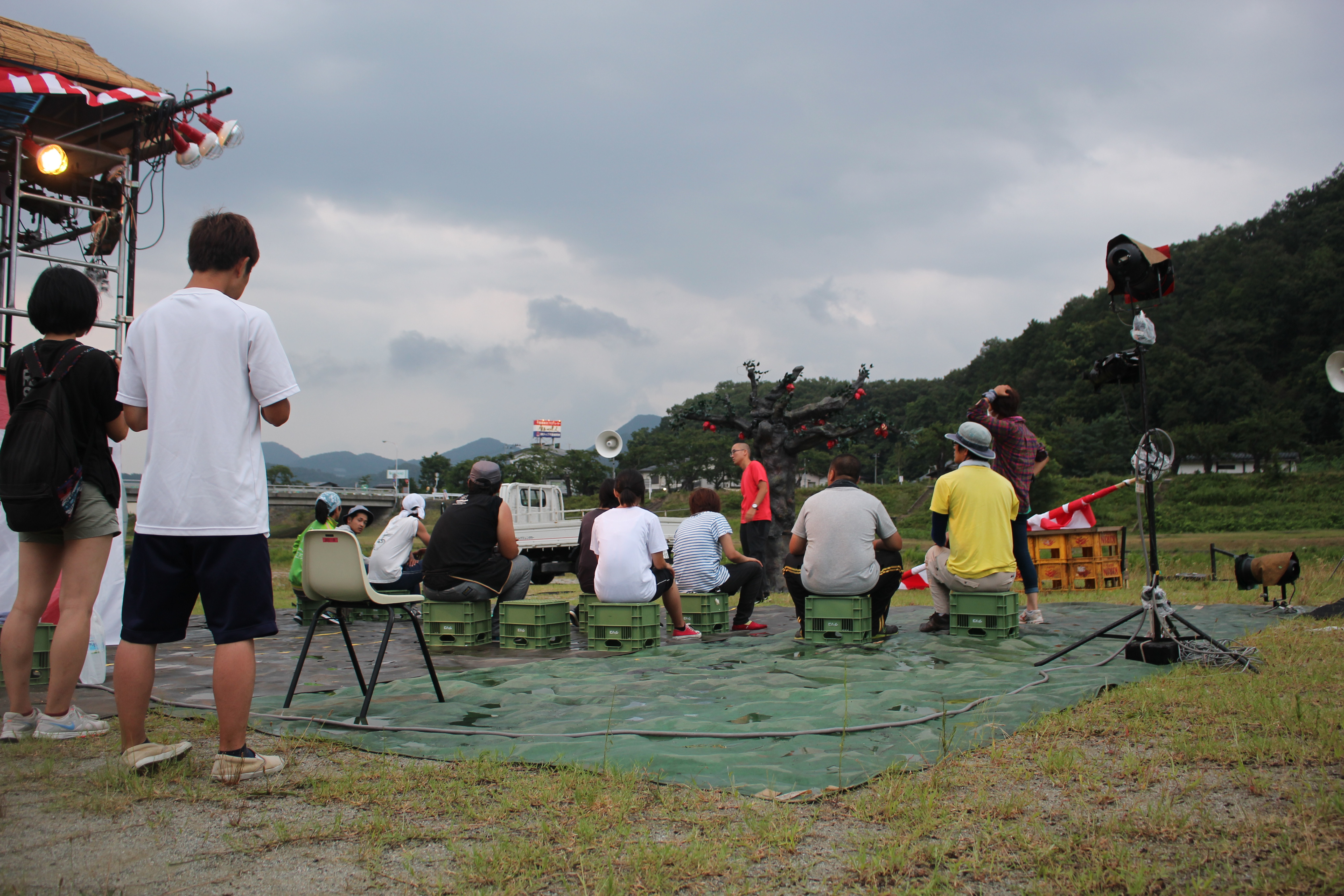 現場入りした日は雨が降りしきり、本番日もあやしい雨雲が現れ