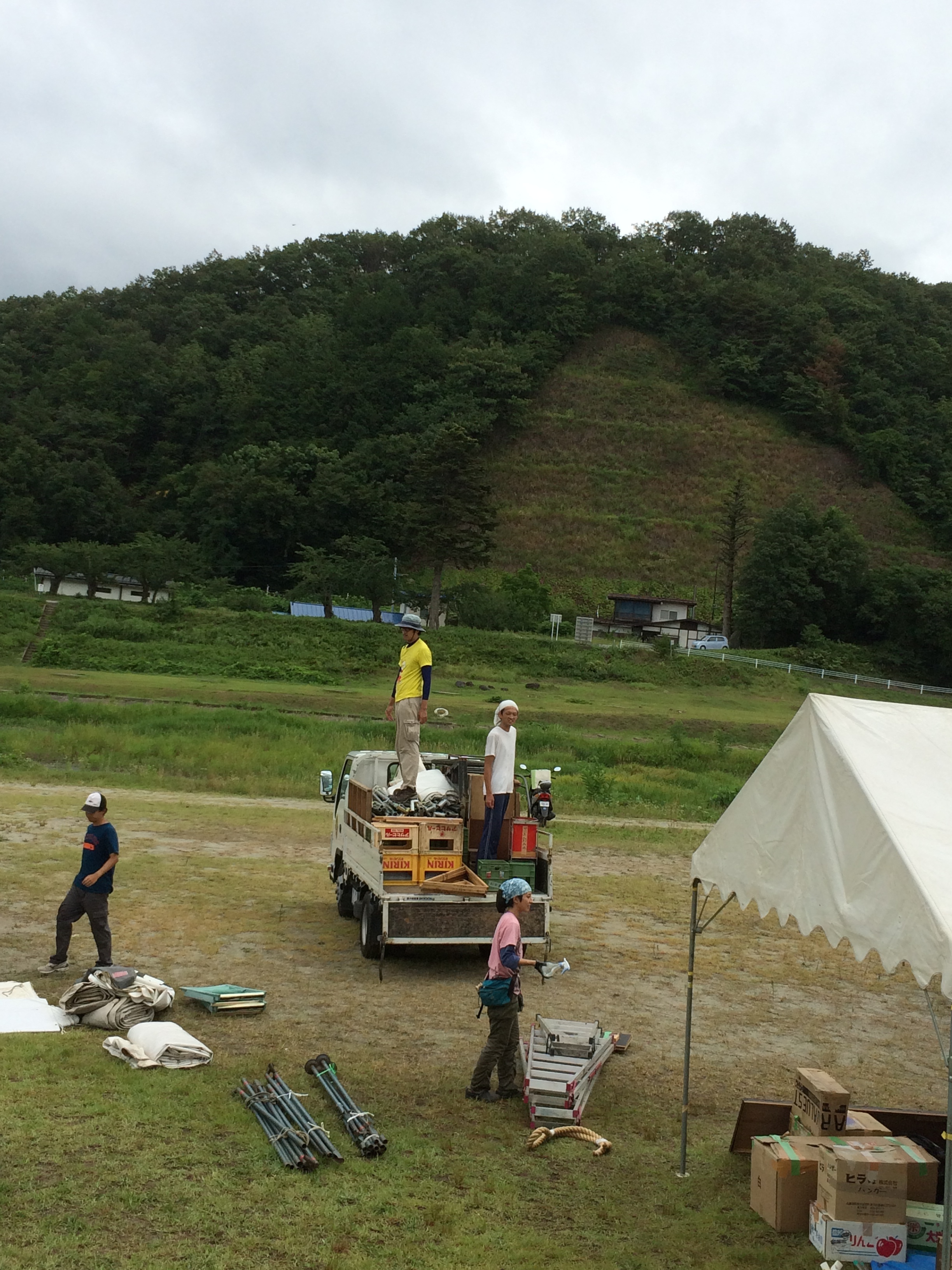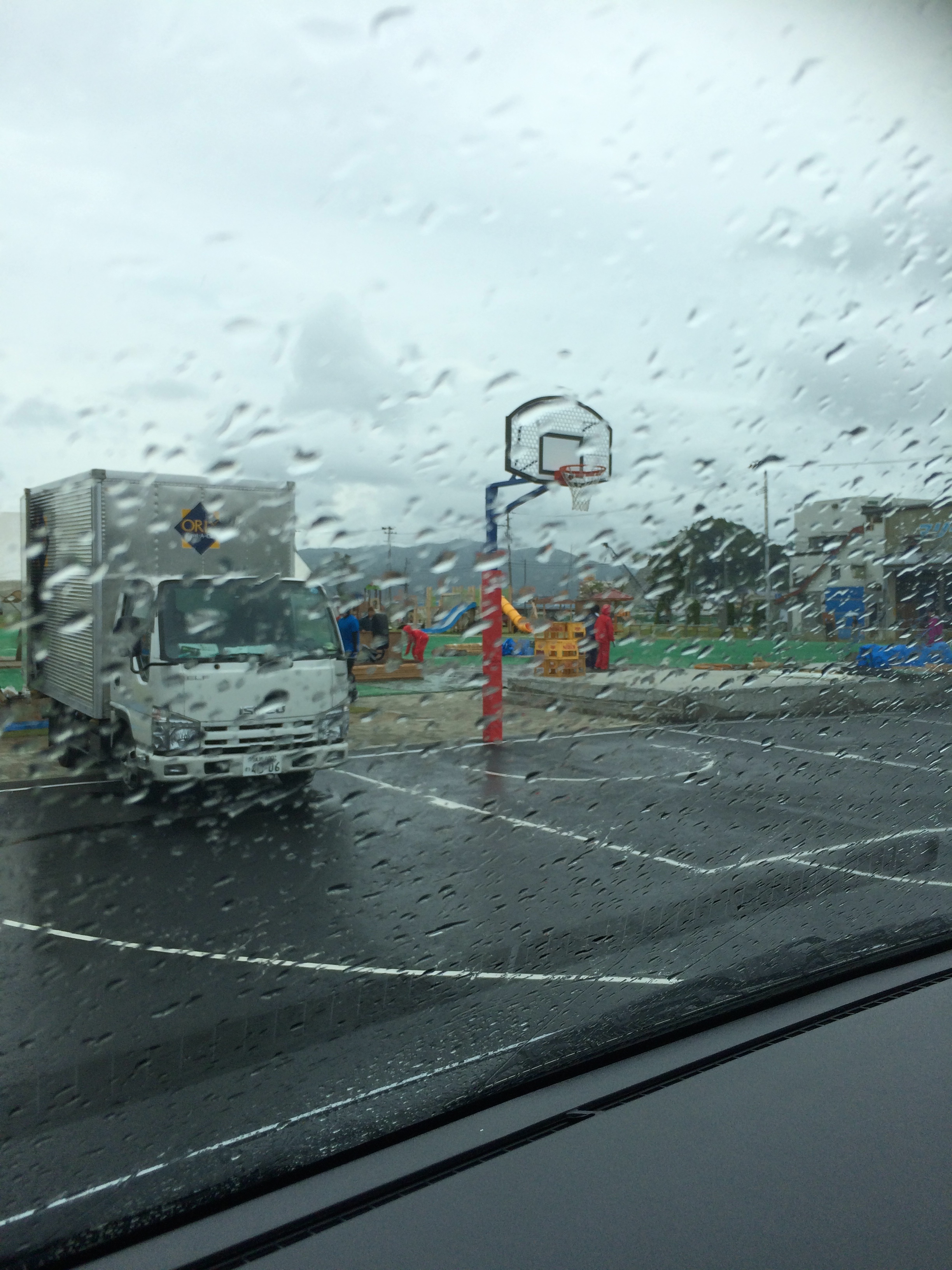 その後、大学であらかた積み降ろし作業が済んだころ、ちょうど雨が降りはじめた。