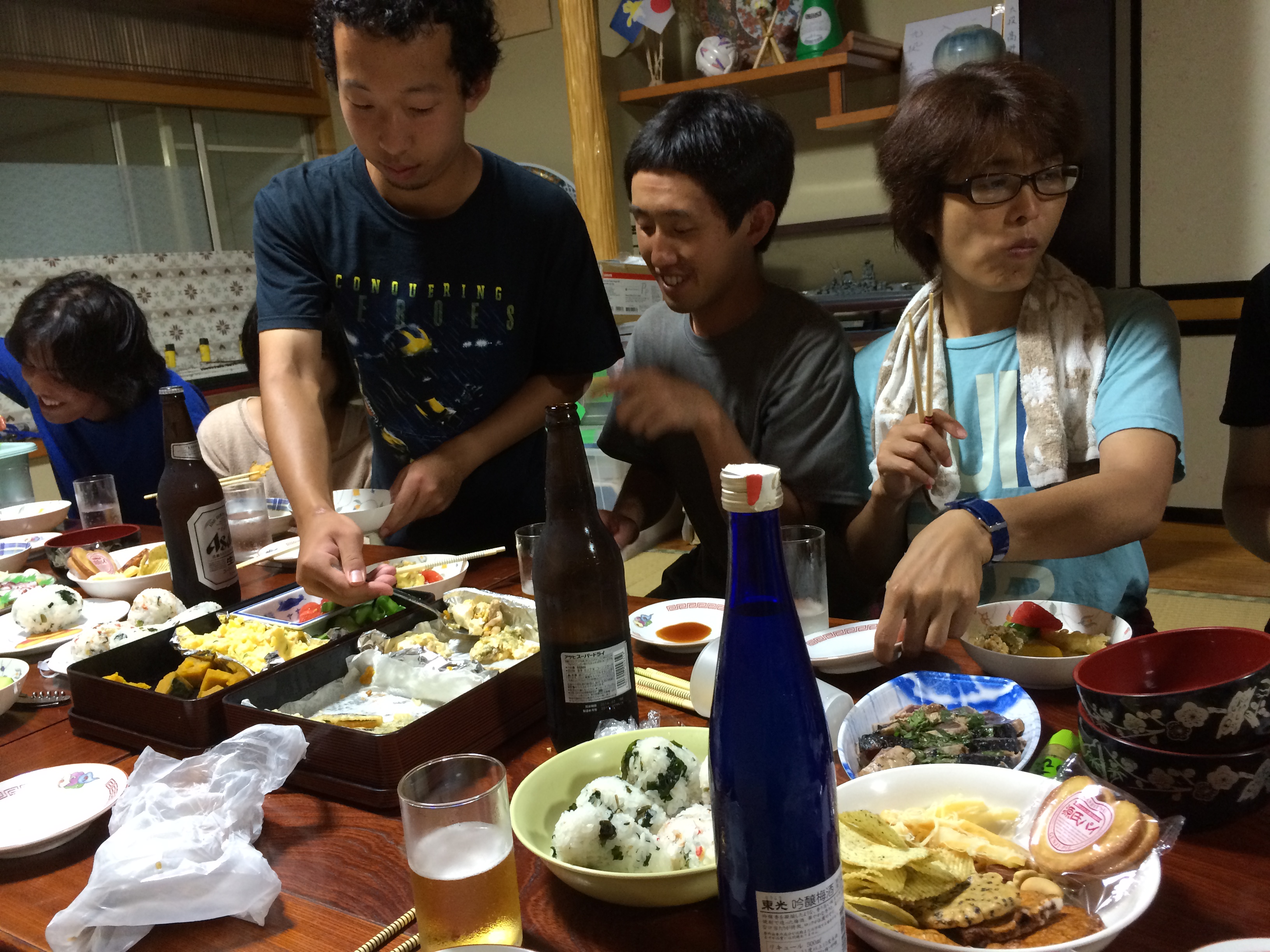 宿舎にチェックインしたら、食べて、呑んで、風呂に入り、とにかく寝る。
