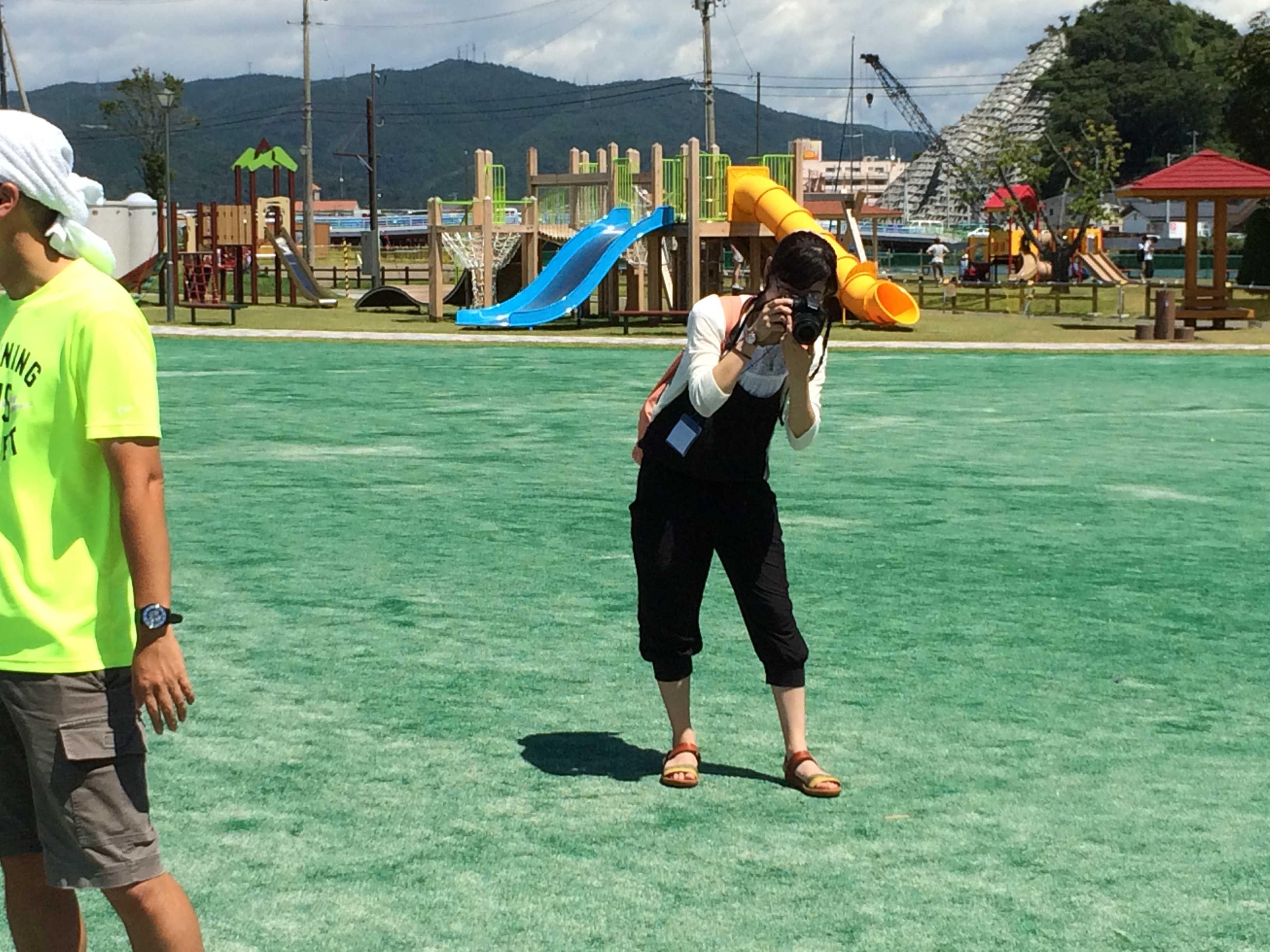 宮城の長者原SAにある公園の木陰でミーティング、