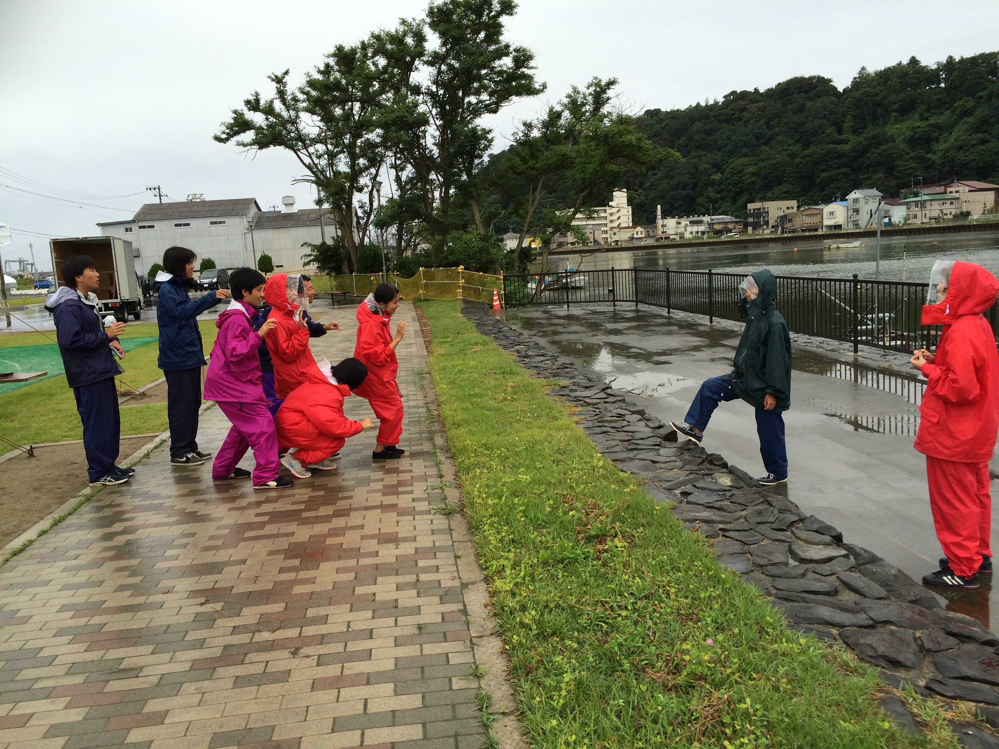 雨降りしきる中のリハーサル!