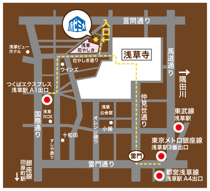 ○東京メトロ銀座線「浅草駅」3番出口 徒歩7分